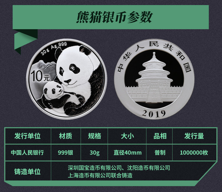 2019年的30克熊猫银币是被母亲抱着的幼年大熊猫,代表“爱的新生”~