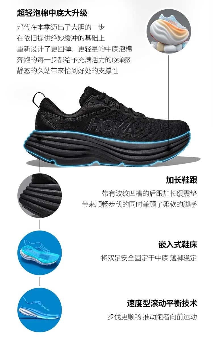刚好,最近新测评了这双 Hoka One One克利夫顿 BONDI 8 跑鞋 。