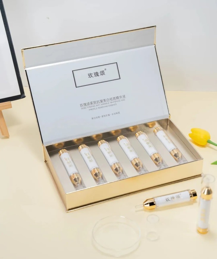 现如今大家的生活节奏都比较快,长时间对着电脑蓝光、晚睡熬夜都是家常便饭,久了皮肤粗糙暗黄,黑色素冒出,色斑形成,这种情况你就赶紧试试这款玫瑰精华液吧!