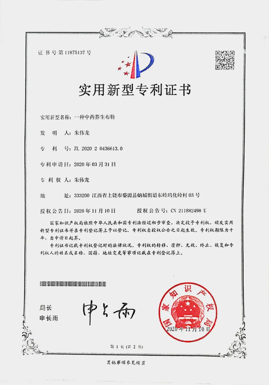 老匠人的中药老布鞋已经获得了