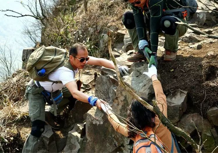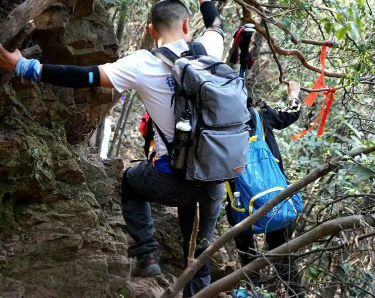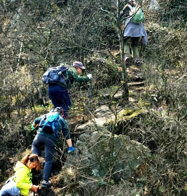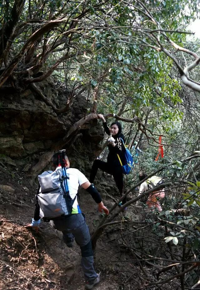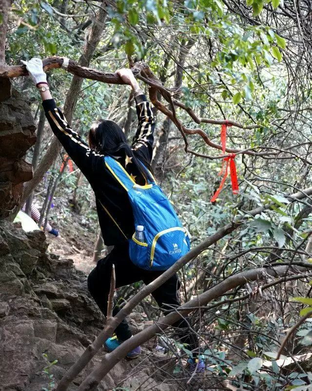 陡峭的山路处处充满危险,每个人都默契的往上爬,看美女的姿势是不是很赞