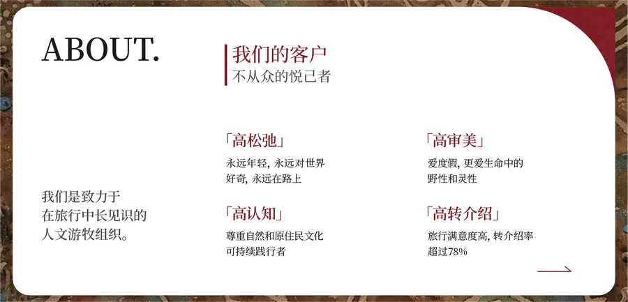 12年的创业把我们历练成了拥有人文理想主义的实力派。“旅行不能改变世界,却能改变看世界的眼睛”已经成为刻入骨子的使命。