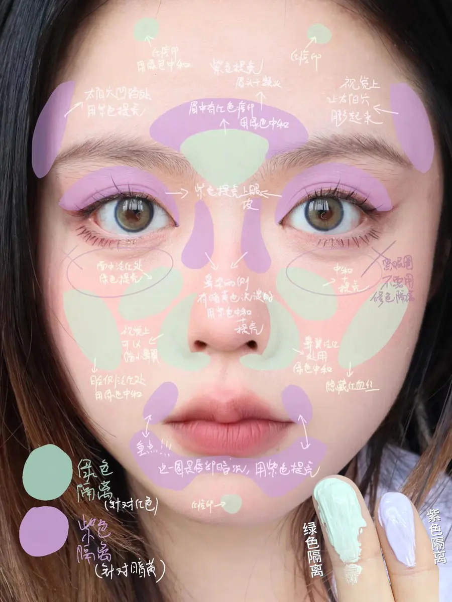 淡紫色:适合泛红、痘印的皮肤