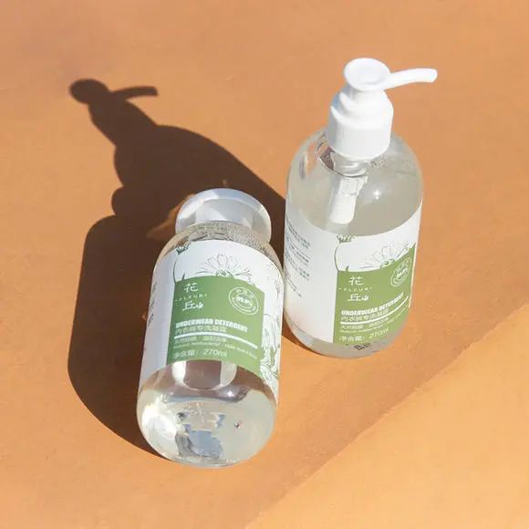 花丘·内衣裤专洗凝露,凝露透明而清澈,无色素和香精。