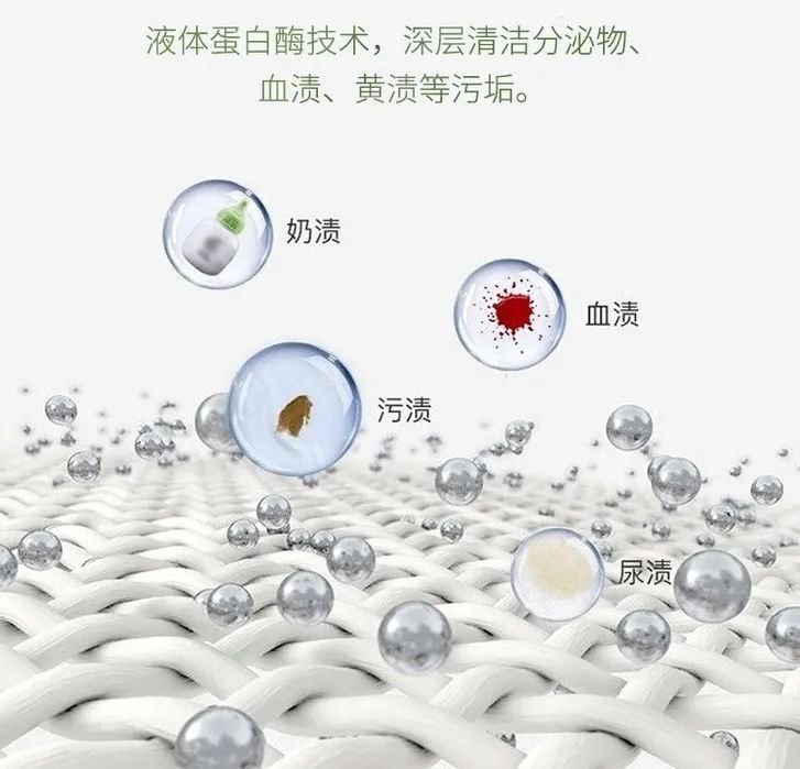 蛋白酶能直接进入纤维内部瓦解污渍,像是有成千上万只小手在高速搓洗内裤。