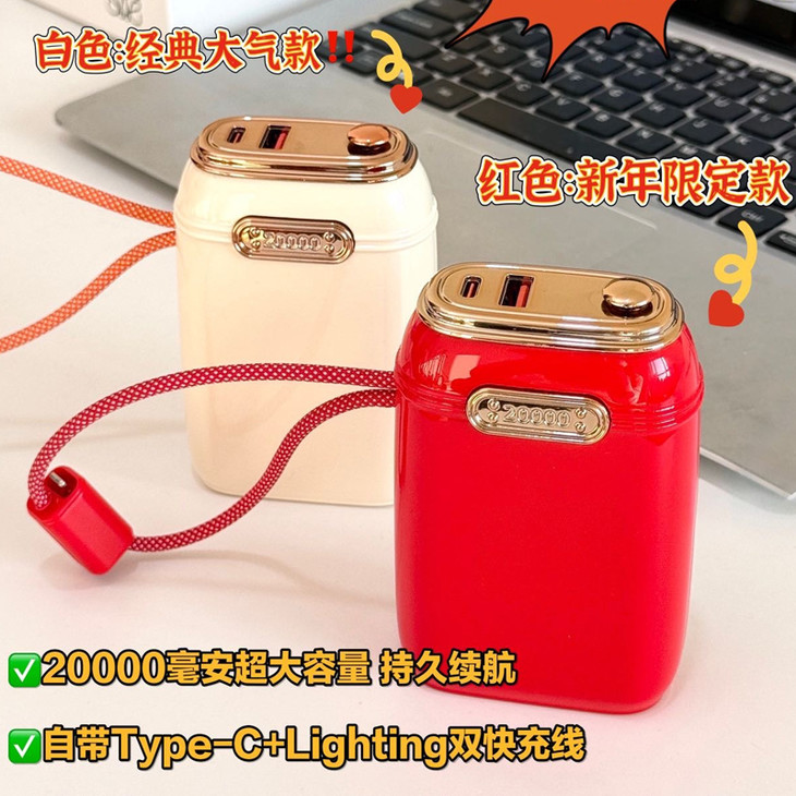 新年红色限定款,3C国家认证,2万毫安大容量却仅重310克,小巧便携可上飞机高铁;自带TYpe-C&Lightning双快充线,越野徒步也能用!
