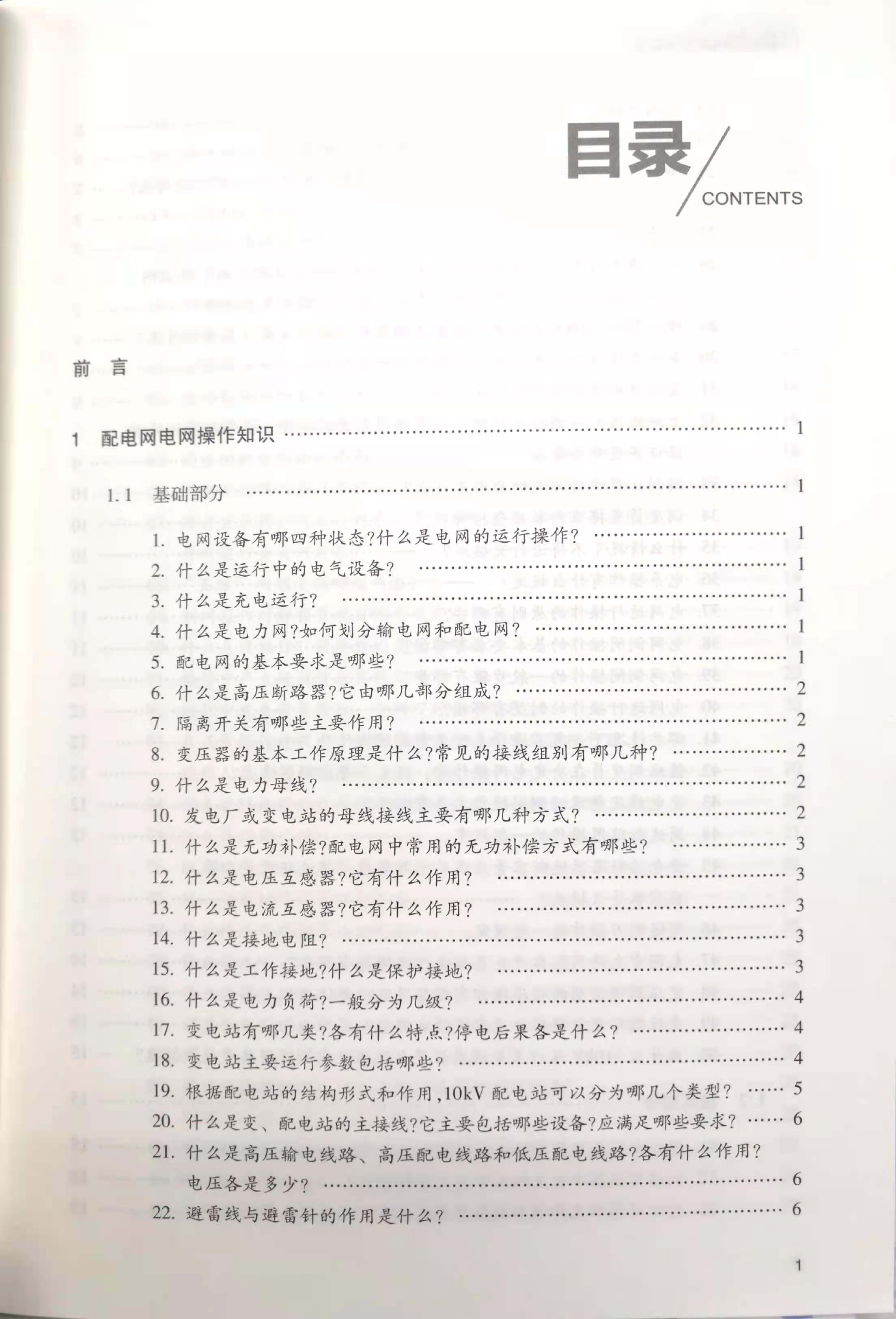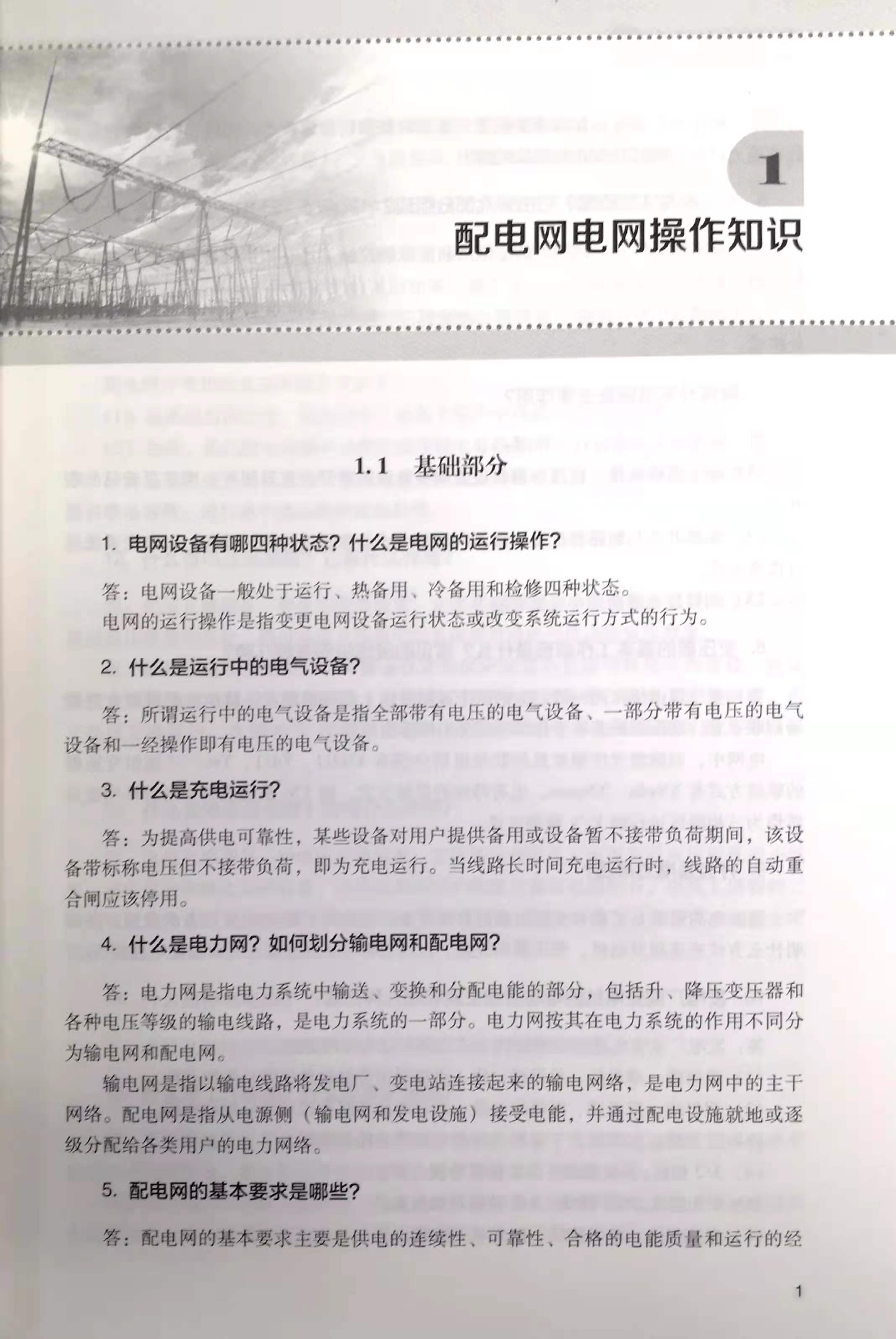 第1章为配电网电网操作知识,介绍了电网设备基础知识、操作注意事项及相关运行规定。