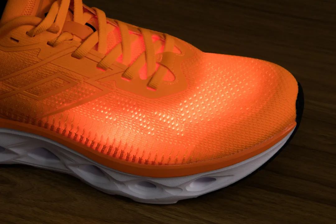 首先,鞋面用的是4D梦幻纱+“苏绣”工艺,每个透气孔分布紧密又均匀,这就决定了跑鞋优异的透气性!