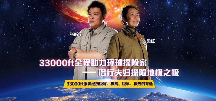 2018,33000ft为探险节目《地球之极·侣行》张昕宇、梁红夫妇及其团队提供户外服装,凭借高性能的面料、贴心到位的设计以及精良的工艺,经受住各种极端气候环境的考验。并通过节目的播出,户外文化得到了很大的普及。