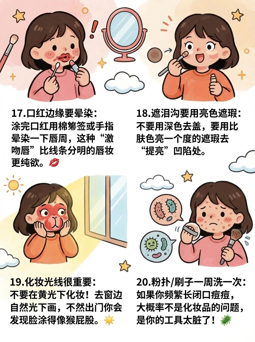 📝 我自己也是从“手残党”一路摸爬滚打过来的,踩了无数雷,浪费了无数粉底液,才总结出这些看似不起眼⚡但能决定妆容精致度的冷知识🌸