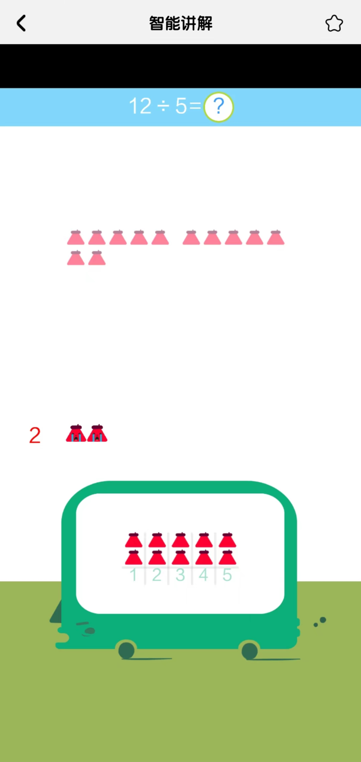 比如输入了一个需要计算出余数的式子,通过小怪物上车找座位的动画,就能将余数产生的过程讲解得十分清晰。
