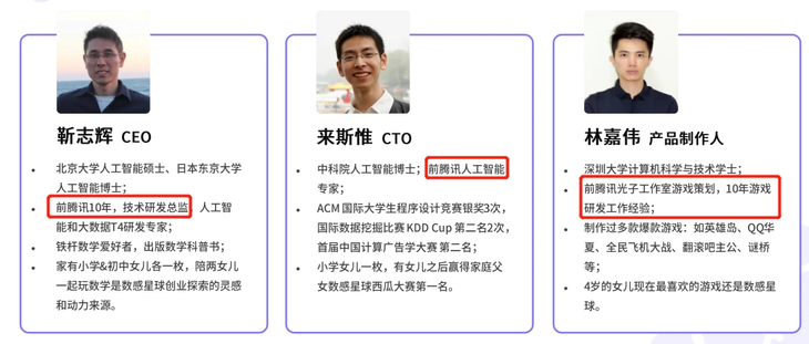 数感星球的创始人是3位超级学爸,来自国内最高学府北大及中科院,专业领域覆盖专业数学知识、人工智能、心理学、教育学,且都是腾讯系的人才,为多样化的产品内容打下了坚实的基础。