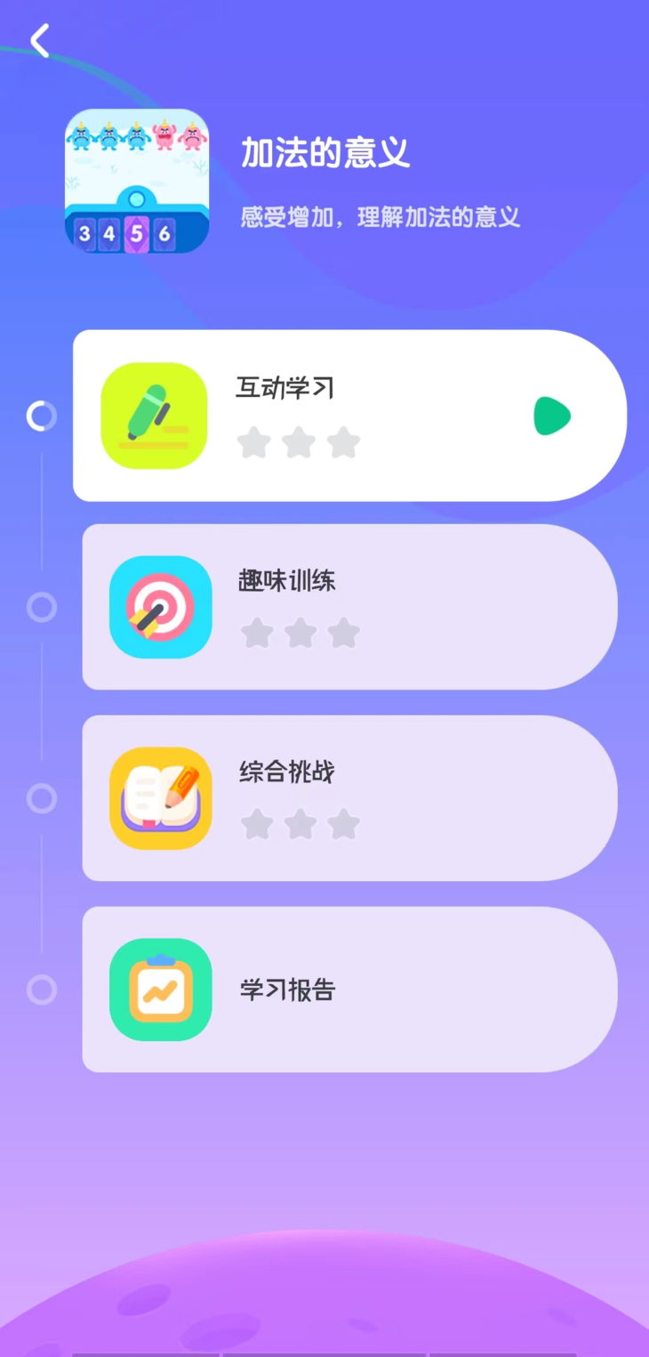 数感学园包含十三级的阶梯体系,帮助孩子从认识数字开始,进行数感计算的练习