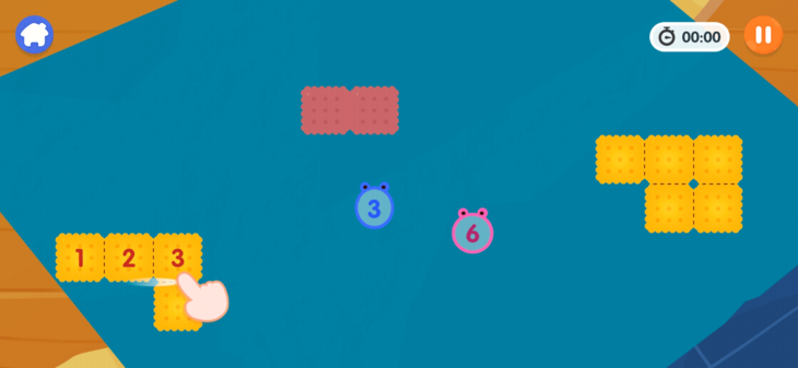 接下来就是练的部分“趣味训练”,通过切分、组合饼干,强化数字分合以及加法的概念。