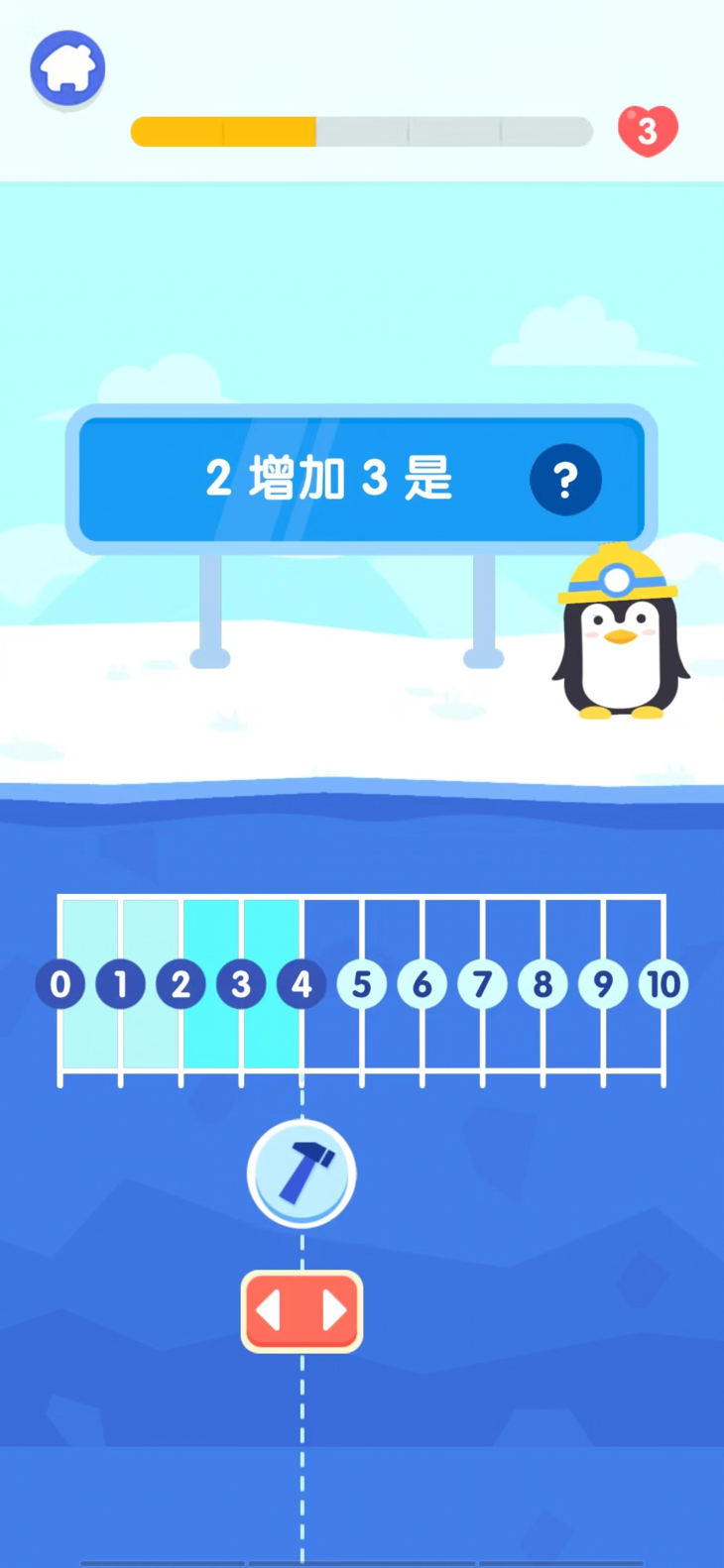 首先是互动学习环节,先是采用具象的企鹅形象,让孩子理解增加的的概念。