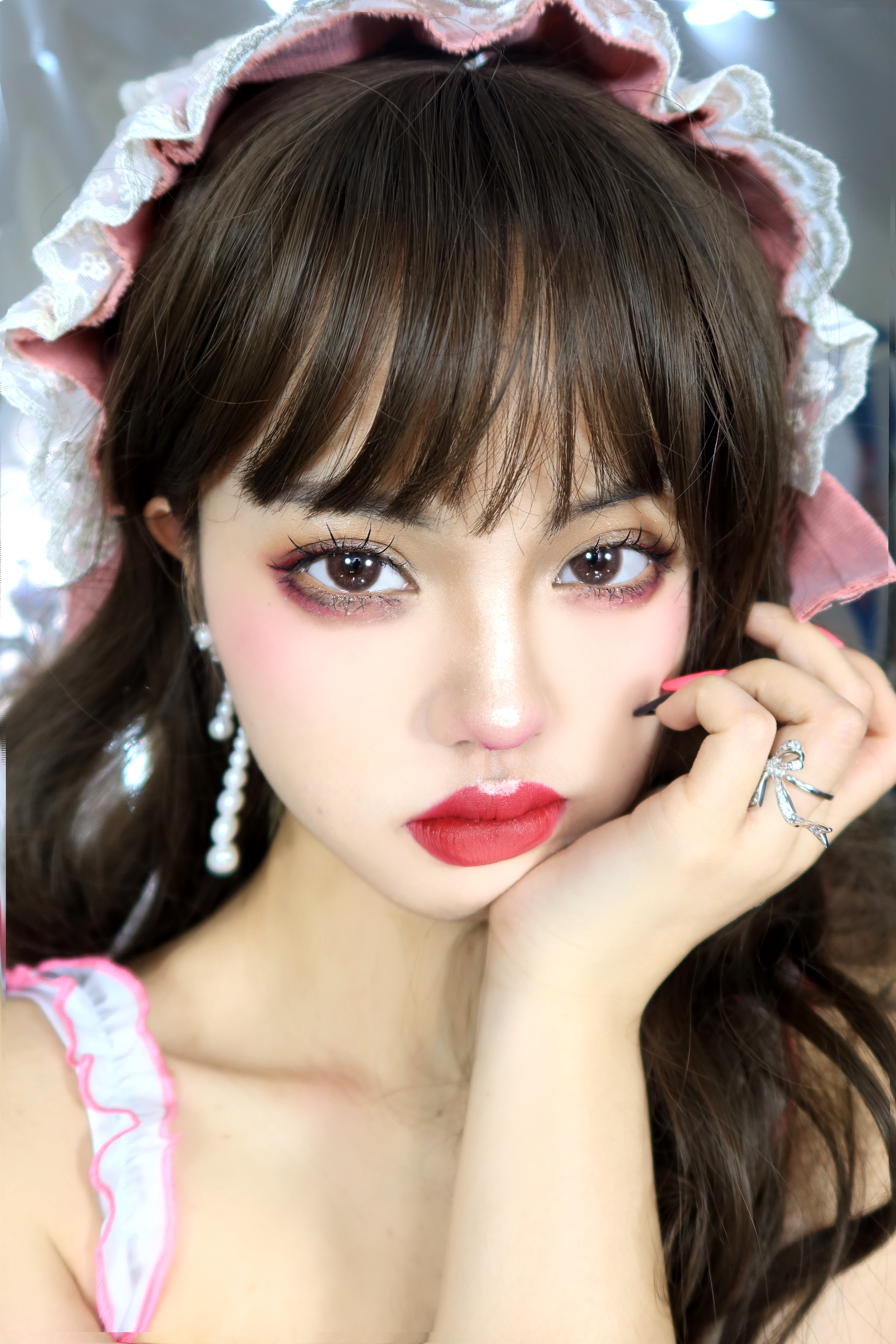 豆沙丝绒质感,玻璃珠珠半透明融瞳