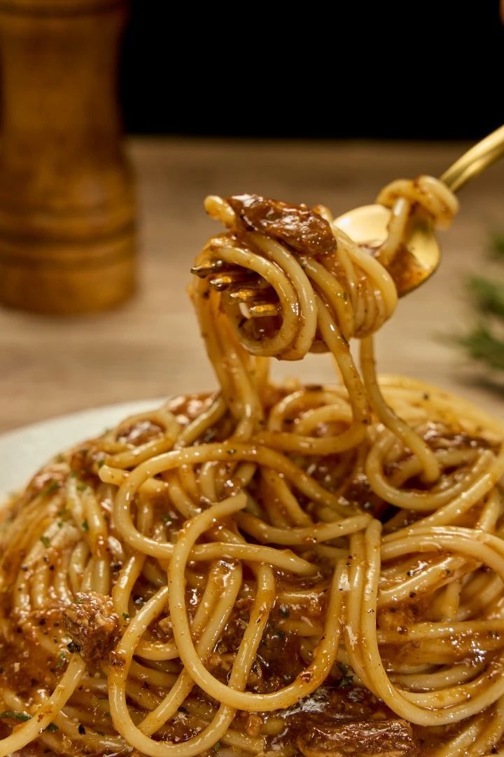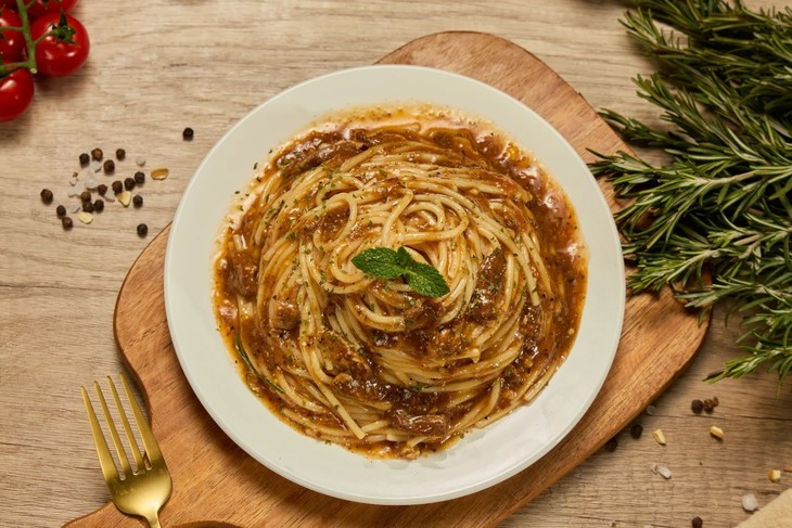 ✅ 食用方法:水开下入意大利面,煮10-15分钟后捞出;锅中倒入肉酱翻炒10秒,再加入准备好的意面一起翻炒1分钟;装盘后根据个人口味加入干酪、欧芹、黑胡椒即可。