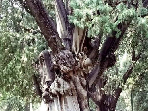 侧柏古树久经岁月的树干,长着很多奇瘤,像是梵高笔下的麦浪。