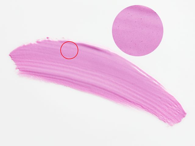 牙膏质地顺滑,但是其中含有许多细小的磨砂颗粒。放大了红圈部分,可以看得更清楚一点。