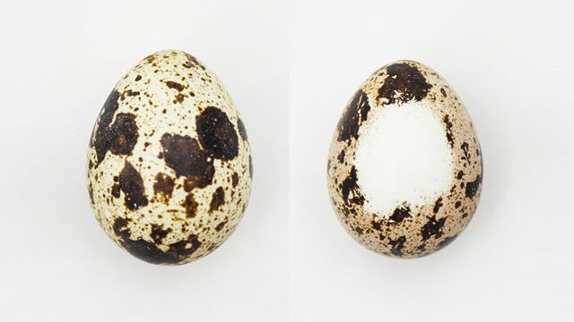 两枚鹌鹑蛋在刷洗前后的对比