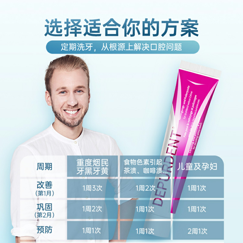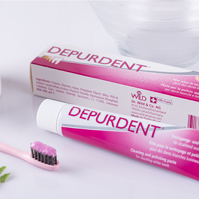 所以日常清洁时选用合适的产品很重要,日常牙膏的选用,普通人选择含氟牙膏一天刷两次即可,但如果你是经常喝茶、咖啡、红酒、可乐等有色饮料,或是队友长期抽烟的,建议家里备上这款来自瑞士的depurdent牙膏作为“助攻”。
