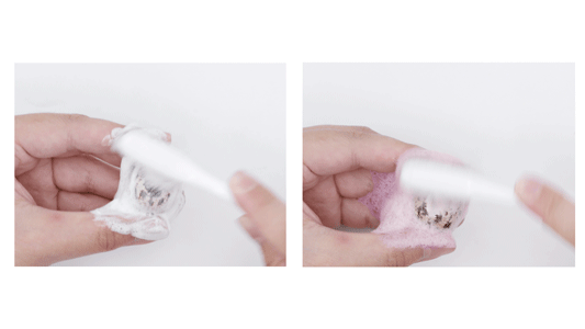 针对它的去牙渍、牙垢效果,官方拿了市面上常见的美白牙膏和和这款抛光去渍牙膏,分别在两枚鹌鹑蛋上像刷牙一样刷洗。