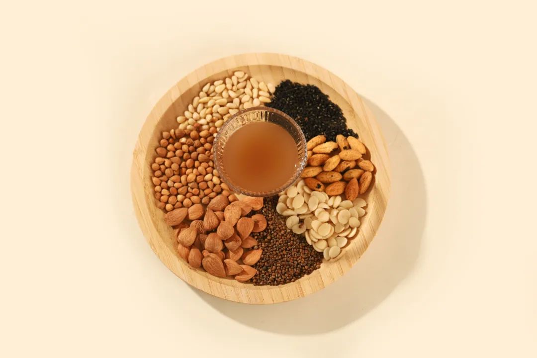 紫苏籽、榧子、桃仁、甜杏仁、黑芝麻、郁李仁、松子仁:富含油脂,给肠道润润燥。