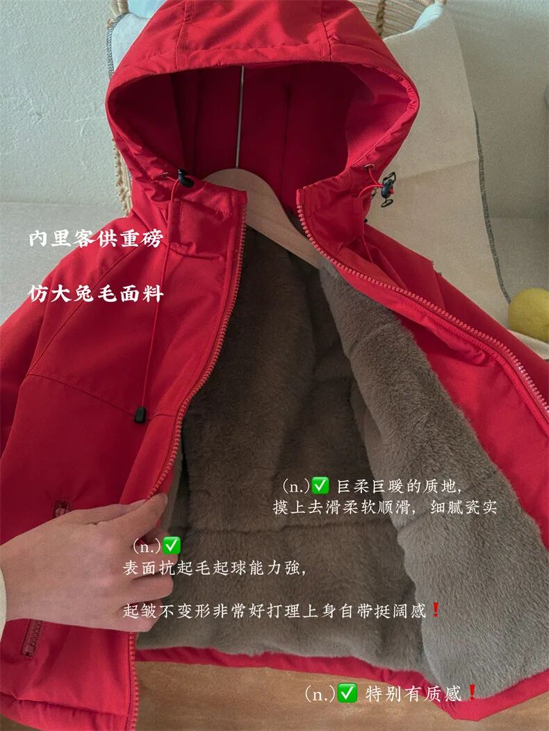 🔝先来讲一下面料!跟市面上的做货面料完全不一样! 真正的做到防水同时又兼顾了防风性、防水性、透气性和保暖性! 内里仿大兔毛夹棉填充🔥高效蓄热抗湿冷⚡️ 远离静电烦恼 保暖性比普通羽绒服还好🌿 👀不会有市面那些小版本棉服的束缚紧绷感 全天候自由伸展穿着有型,怎么动都不累赘! ☺真正的高品质做工,目光所及全是精品!