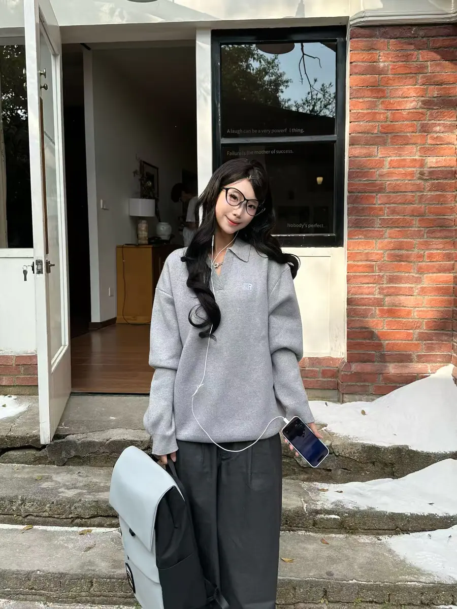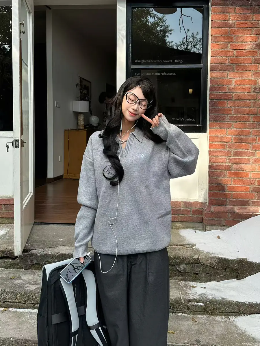 种草单品⑨:V领翻领R字针织衫