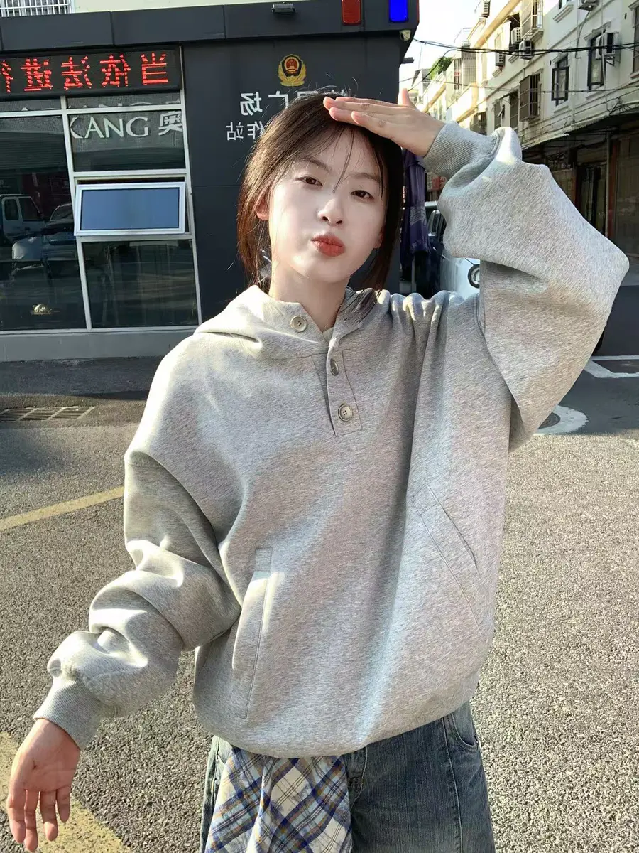 种草单品⑧:纽扣空气层连帽卫衣