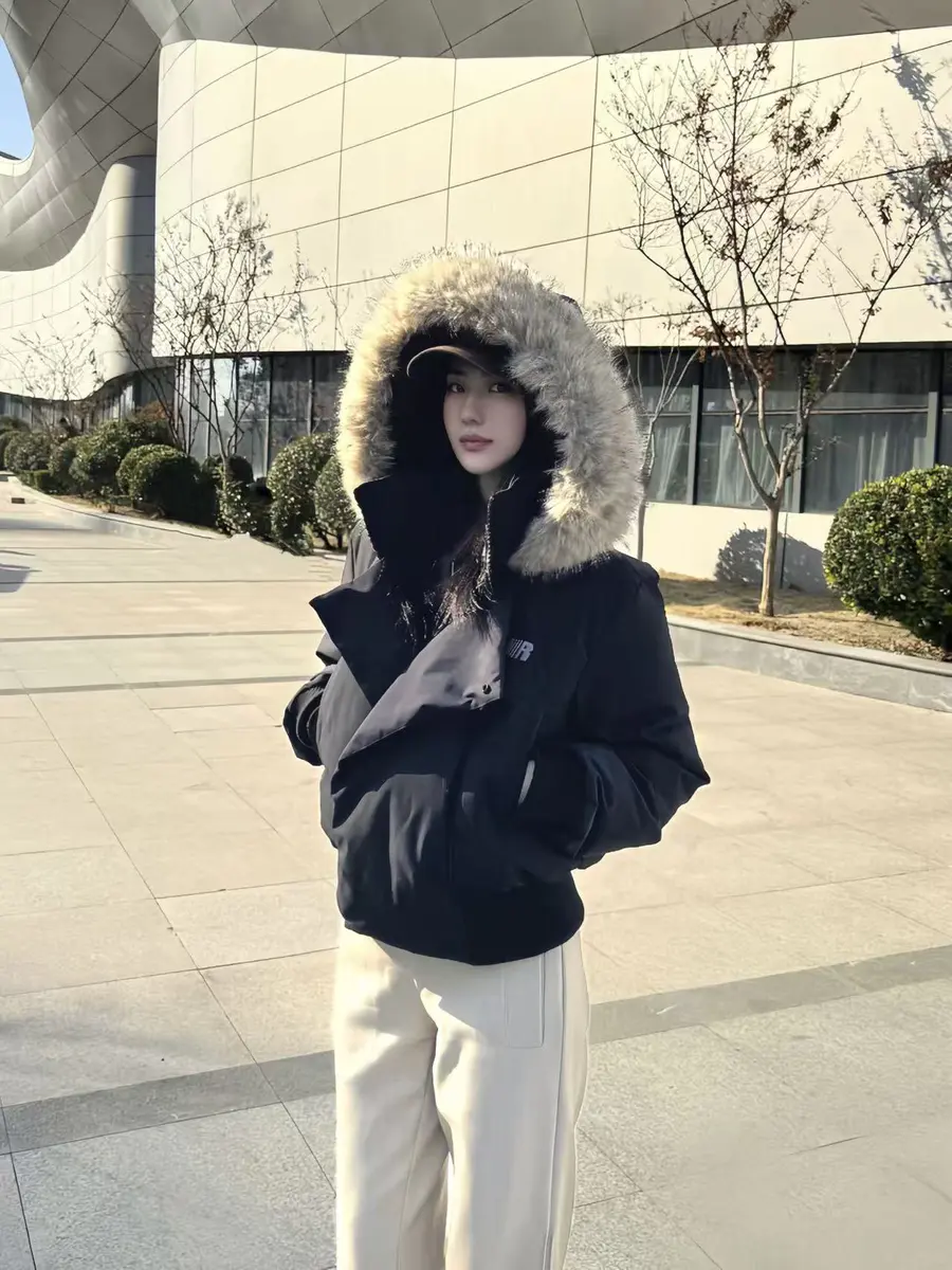 ✨经典简约版的版型,不挑身材不挑风格,宽松剪裁藏肉一绝,微胖姐妹也能轻松驾驭! 重点是这个大毛领蓬松又厚实防风护颈,瞬间拉满冬日氛围感!
