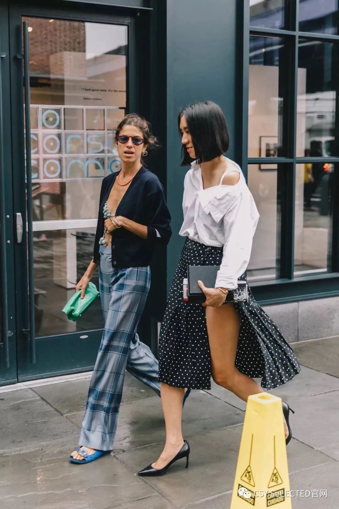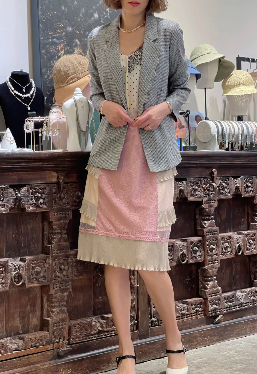 正式的西装和温婉的裙装搭配在一起,刚好形成了风格上的娘man平衡,既不会显得过于冷硬,也不至于显得腻味。