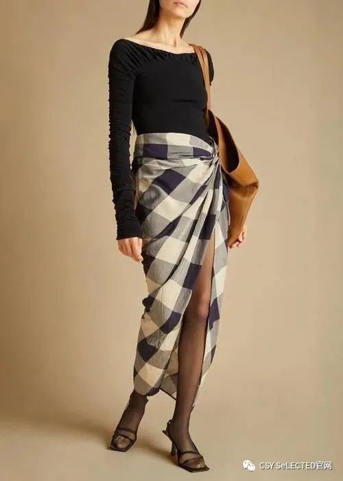 开衩元素的加入可以露出更多的腿部面积,会让腿部线条看起来更修长。而视觉上的纵向拉长,自然也会有起到一定的瘦腿效果。