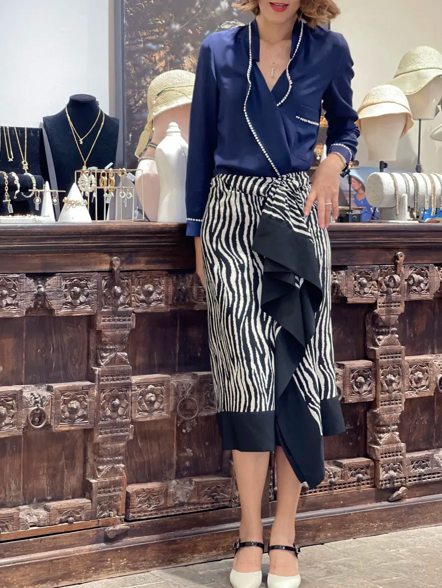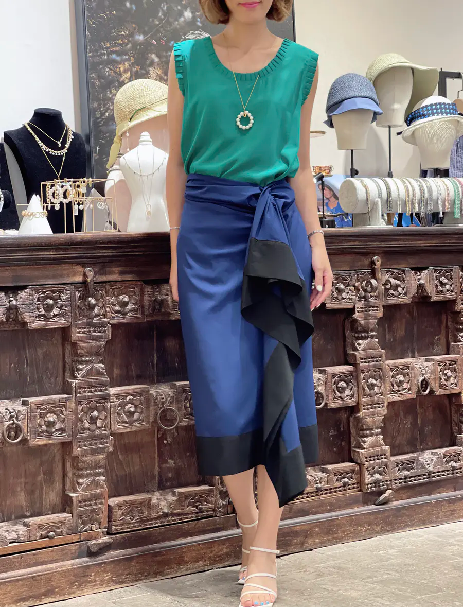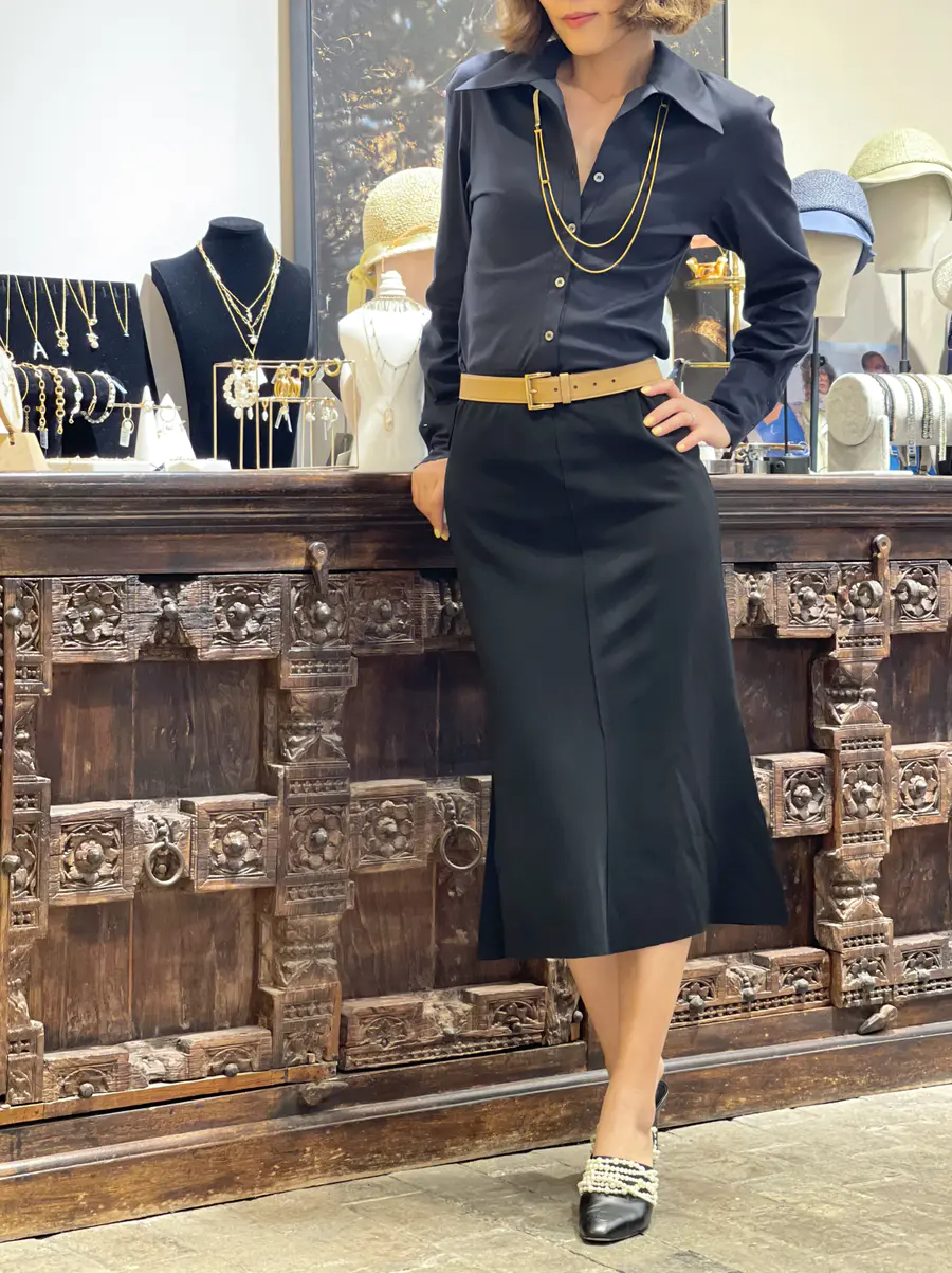 在裙子的选择上,可以将目光放在纯色款单品上,同时选择直筒的款式,会更有干练通勤的感觉。除此之外,也要注意把控面料质感,醋酸面料是不错的选择,轻松打造出好气质。