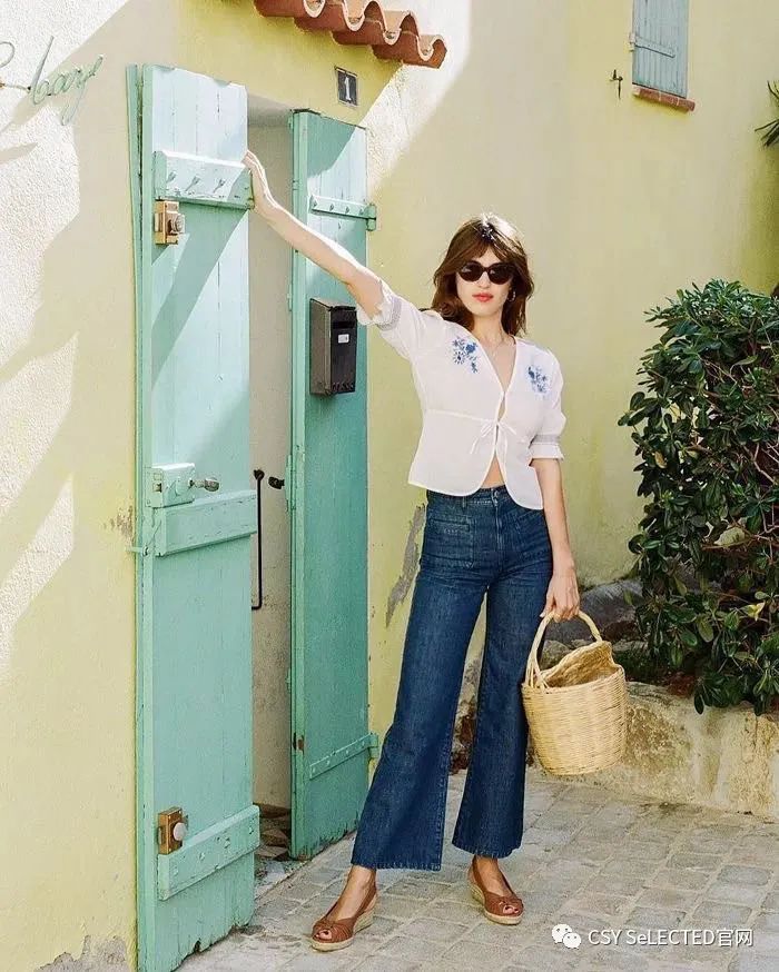 如果说阔腿裤是干练的大女主,那微喇裤就是风情万种的女神。浪漫且百变,是微喇裤的特征。