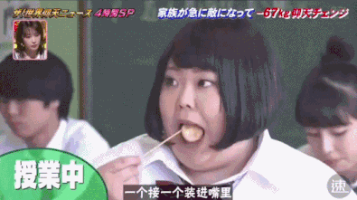早饭吃完五个大饭团加一包泡面,又带一大盒章鱼烧去上学;上课饿了,趁老师不注意时偷偷塞一口。。。