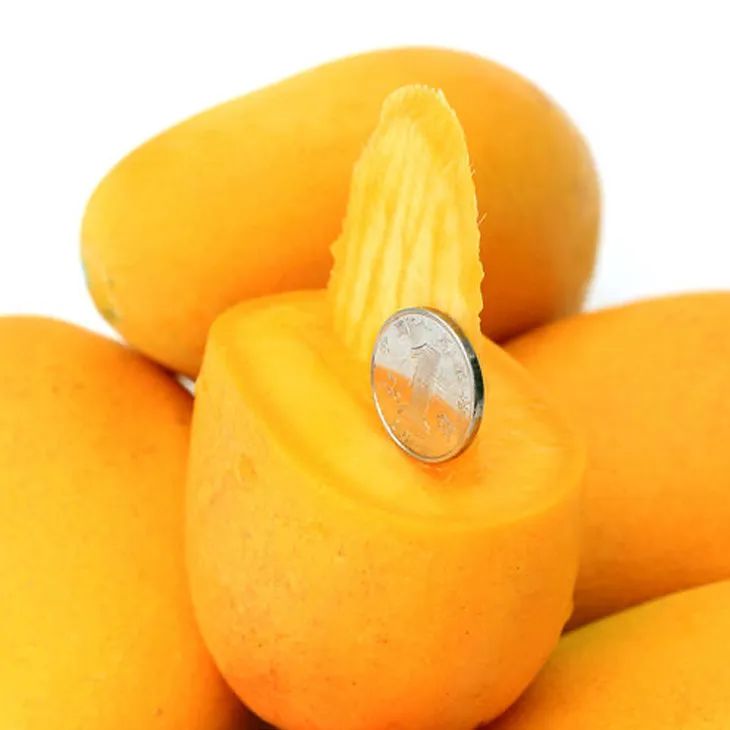 本款为小贵妃芒果,很好吃!很好吃!肉厚多汁,入口爆汁,熟了以后非常甜!非常甜!田阳芒果是公认的口味比其它地区的好!