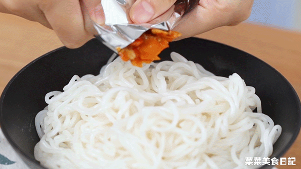 做法简单快手:米粉沸水下锅,煮上3分钟捞起。