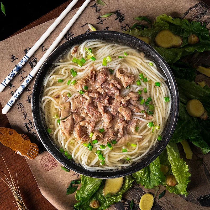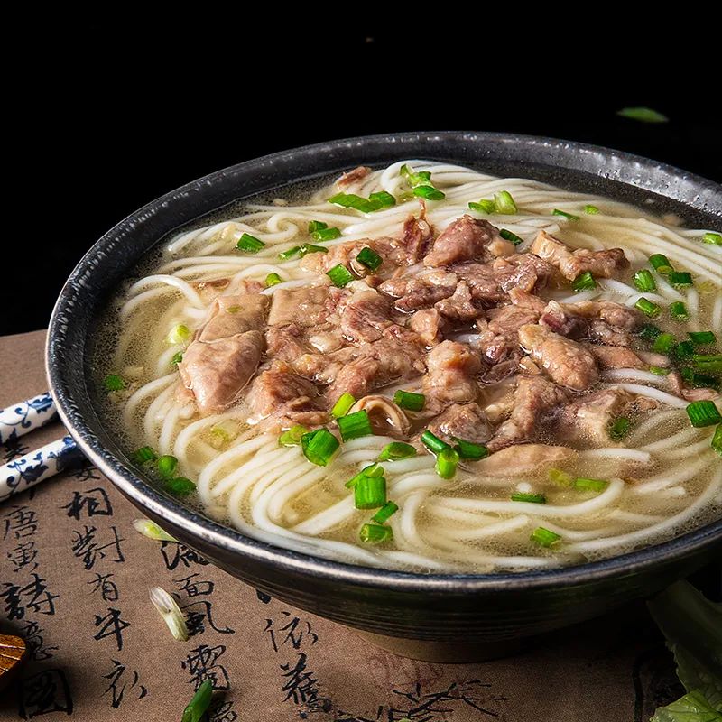 秘制红烧牛肉汤底,鲜甜浓郁,加上大块的牛肉诱惑者味蕾,一点也不忽悠~