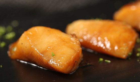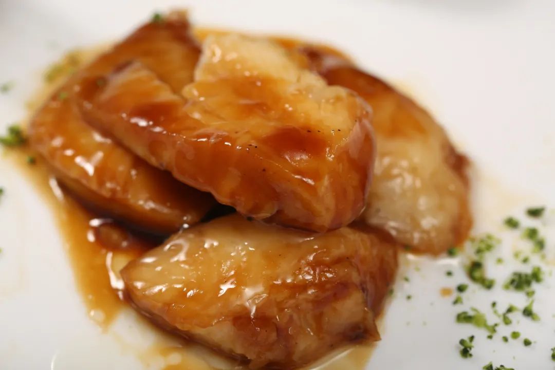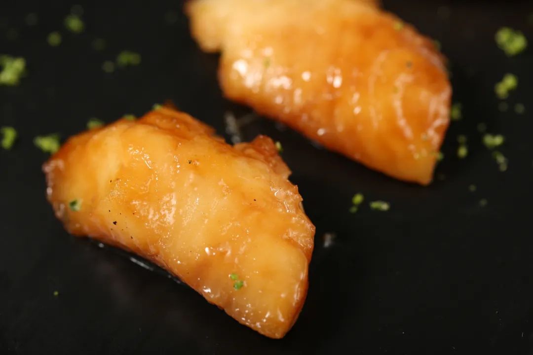 先煎后烤,保留了鱼肉的鲜甜,软糯而丰腴,入口就带着肥美的胶质。