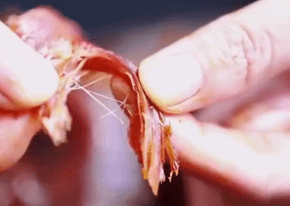 轻轻一扯,可以看到肉肉纹理分明,和饲料喂养鸡的干柴无味感完全不同!