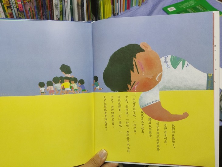翻开第二页的时候,他们看到小男孩躺在地上,注意到了他的脸部,