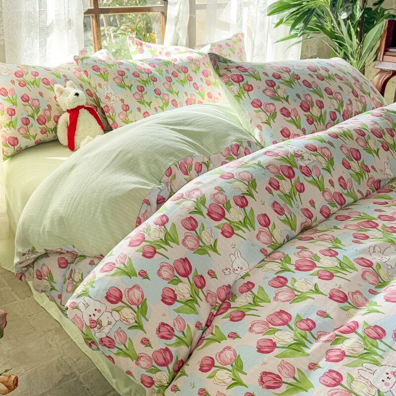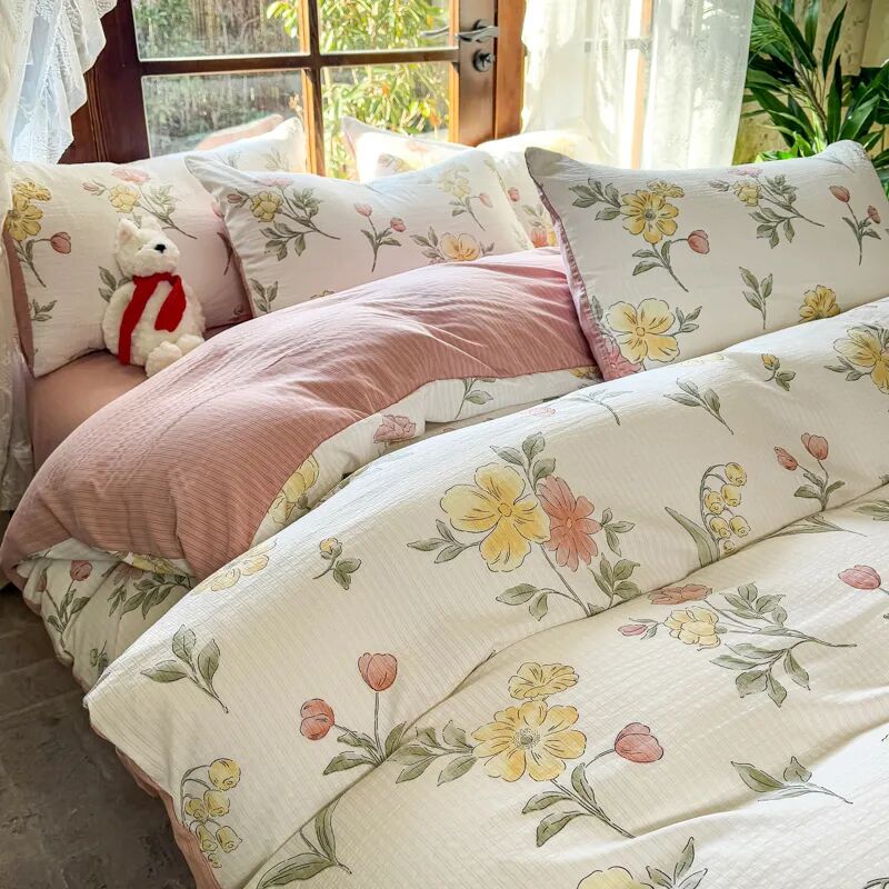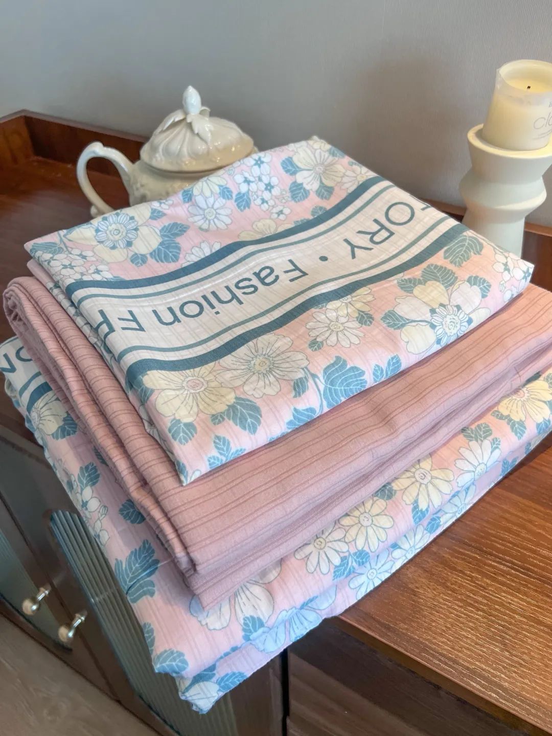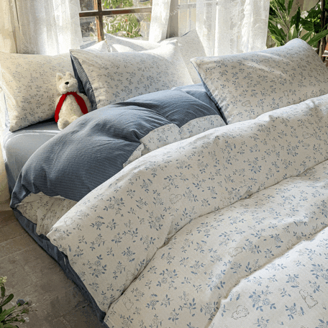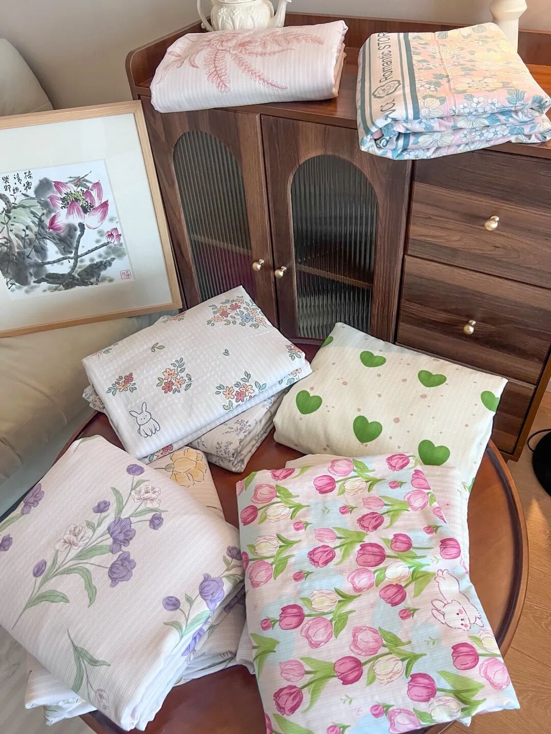 AB面设计,A面是优雅简约的花朵、爱心、条纹、小动物等可爱图案,B面是与之颜色搭配的纯色设计,属于卧室百搭款,怎么盖都好看。