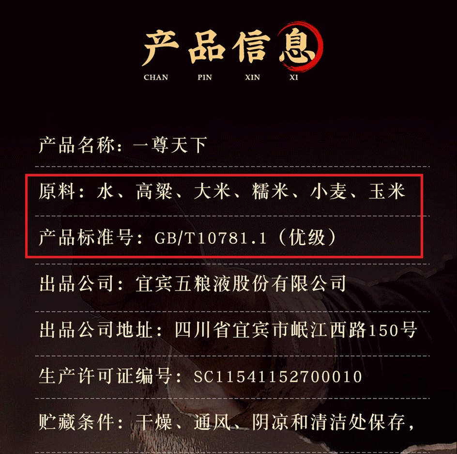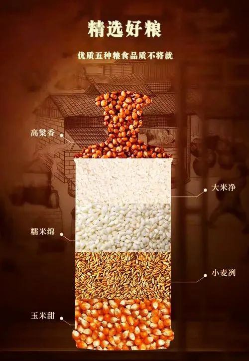 原料除了高粱、大米、糯米、小麦、玉米和水再无其他添加。纯粮酿造,浓香正宗。