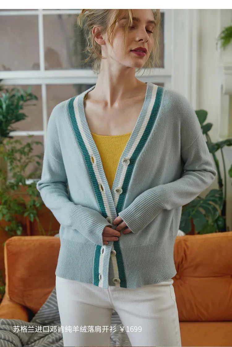 「苏格兰进口邓肯纯羊绒落肩开衫」
