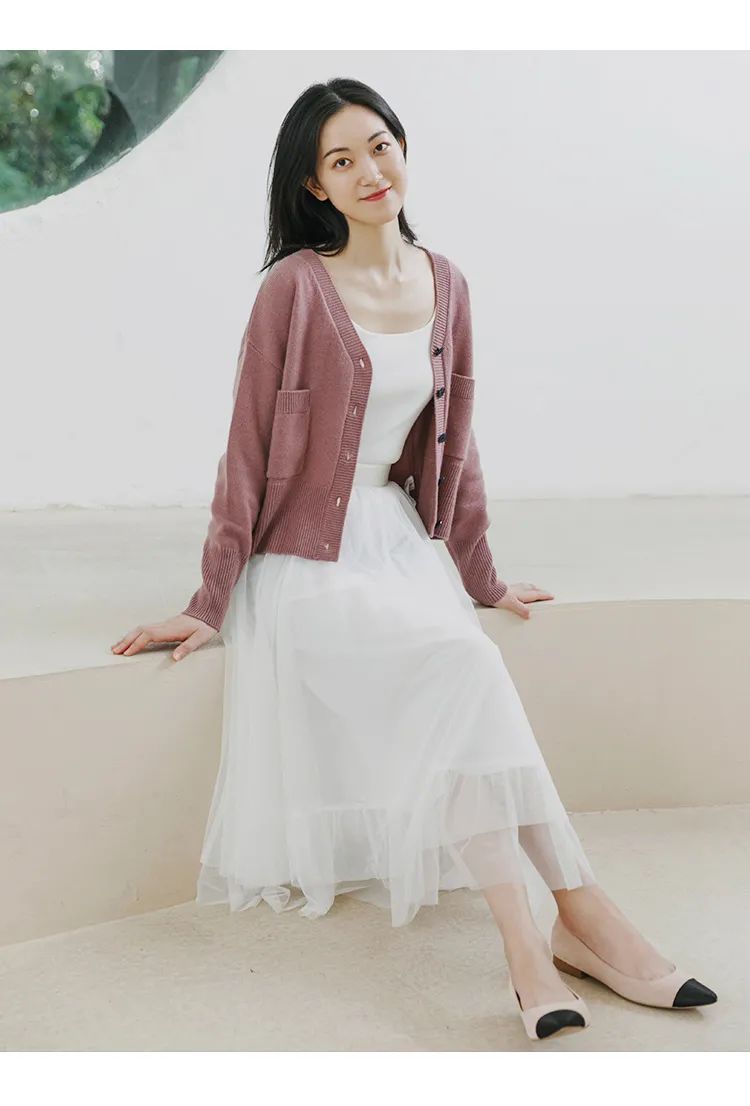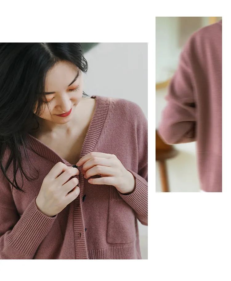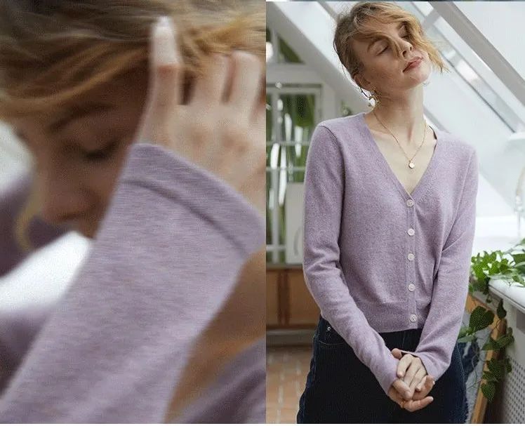 「(香芋紫)苏格兰进口羊绒V领短款开衫」