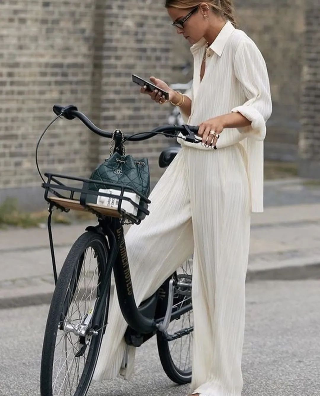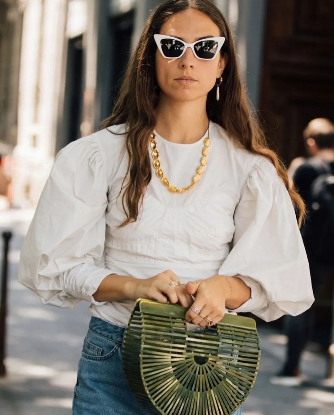 有设计感的白色单品配搭牛仔,趣味性和实用性兼备,配饰方面加上一点点同色系的点缀,精心却不过火。