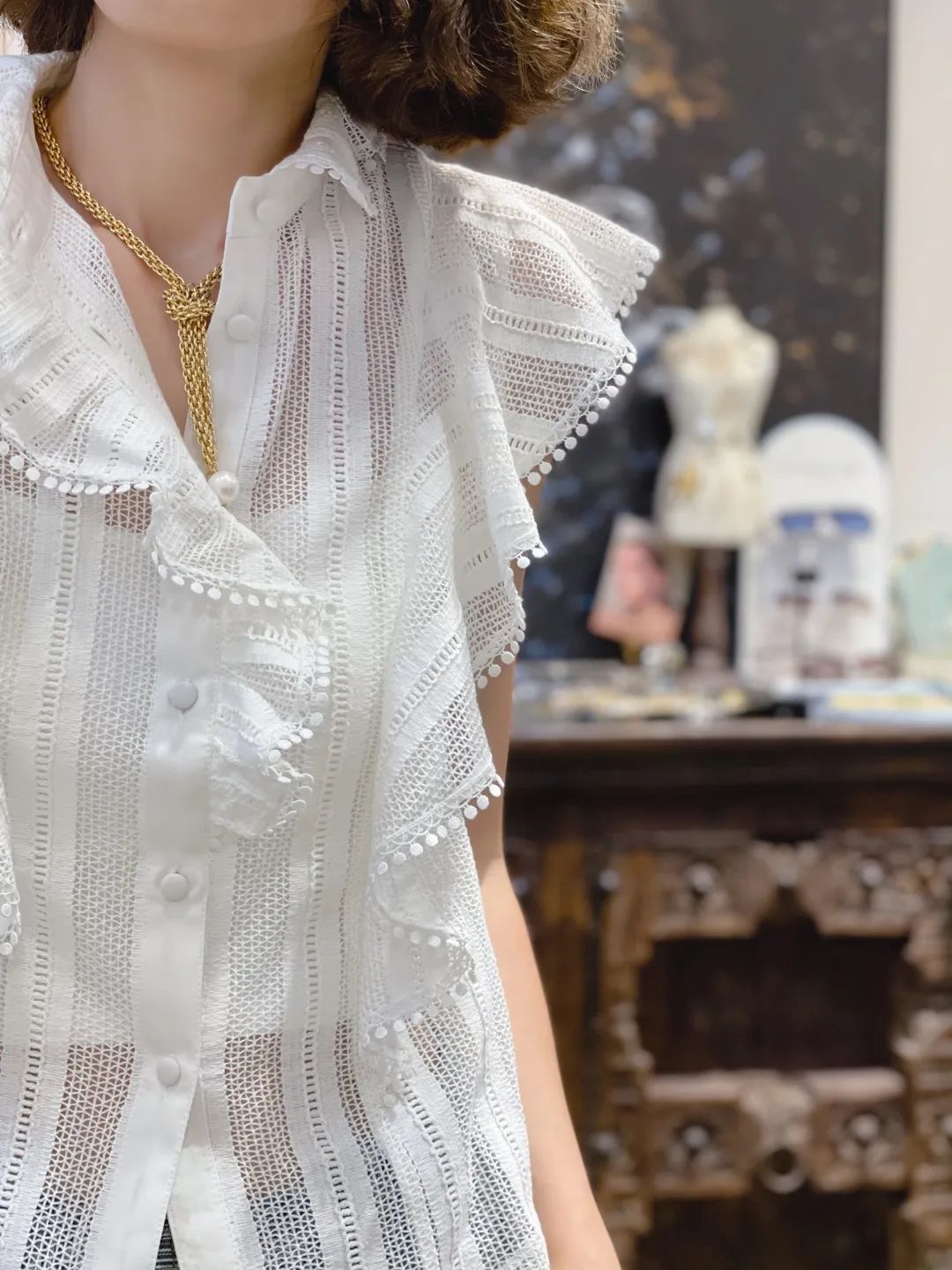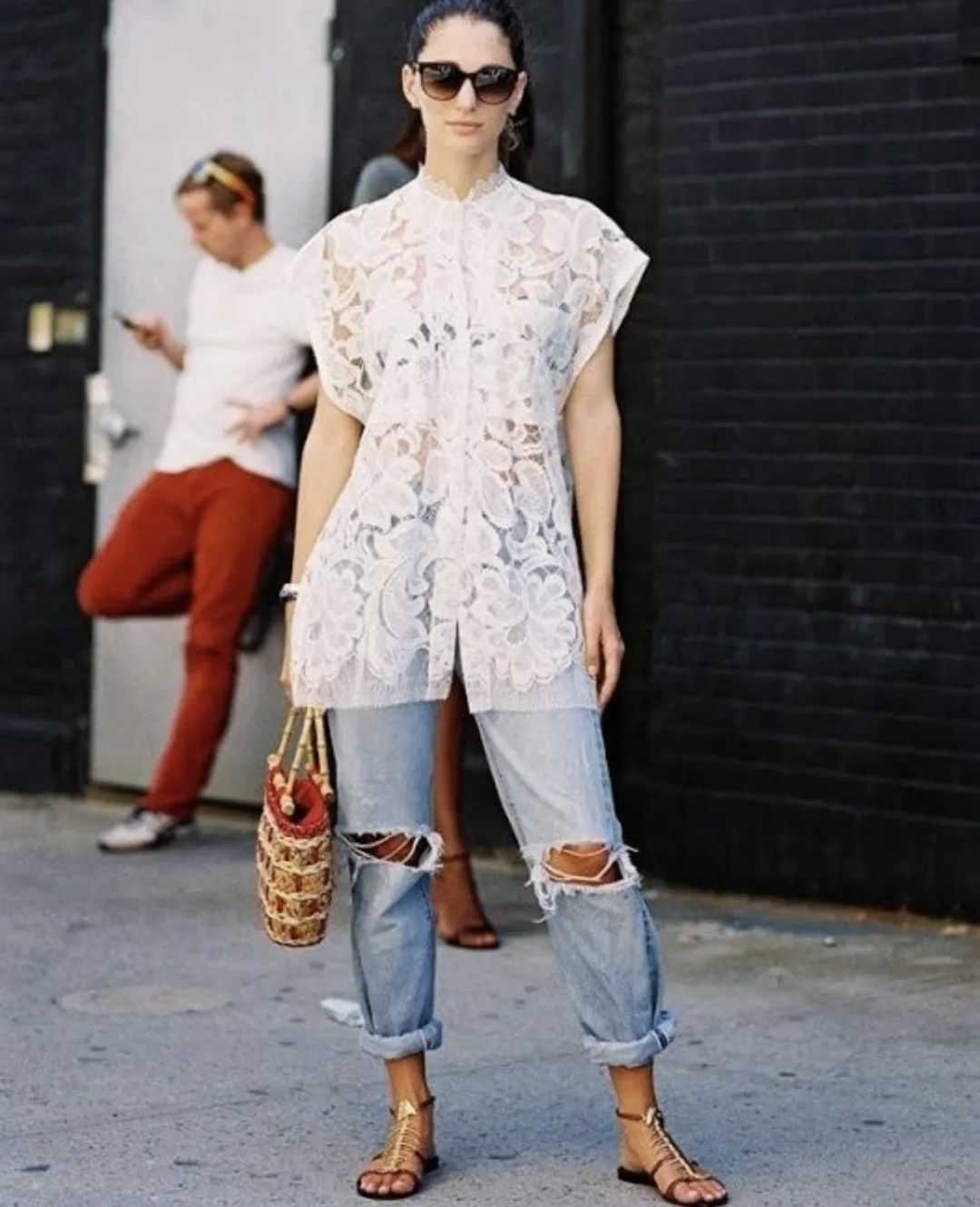 轻奢花型衬衫和街头风破洞牛仔的碰撞,可盐可甜。
