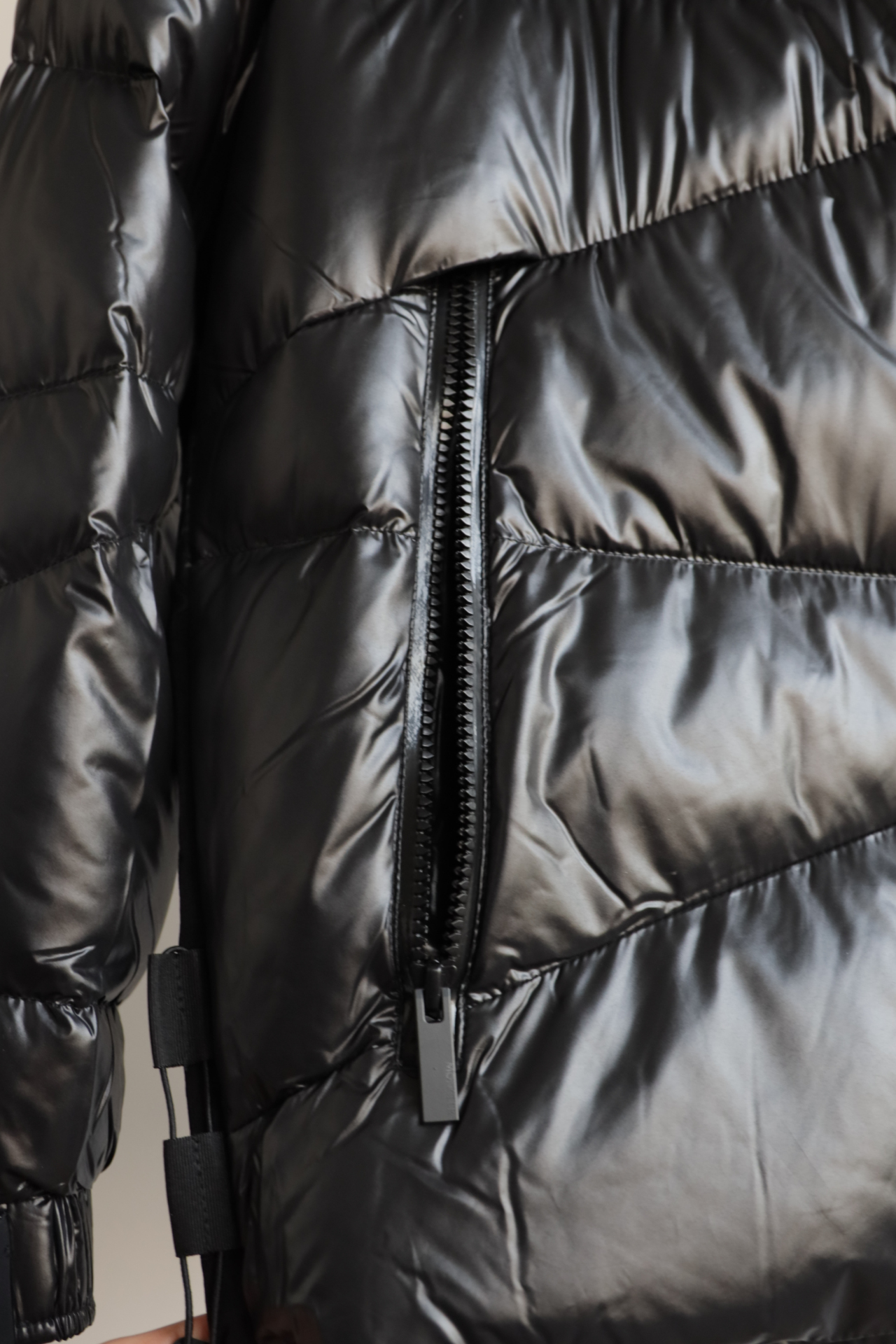 灵感来源于攀登冰坡的冒险装束,具有鲜明的几何绗缝。采用聚酯纤维面料制成,加上聚酯纤维衬里,打造防风保暖的效果。蓬松柔软又暖和舒适。