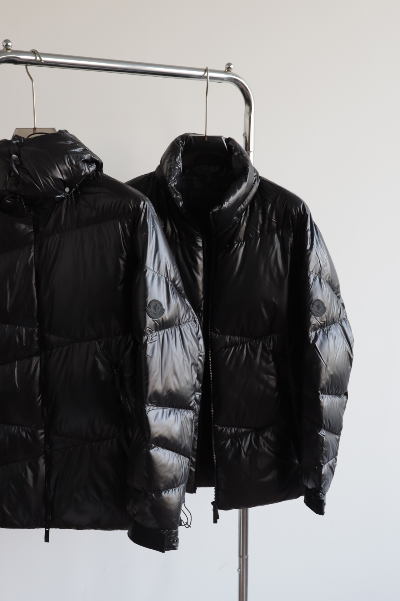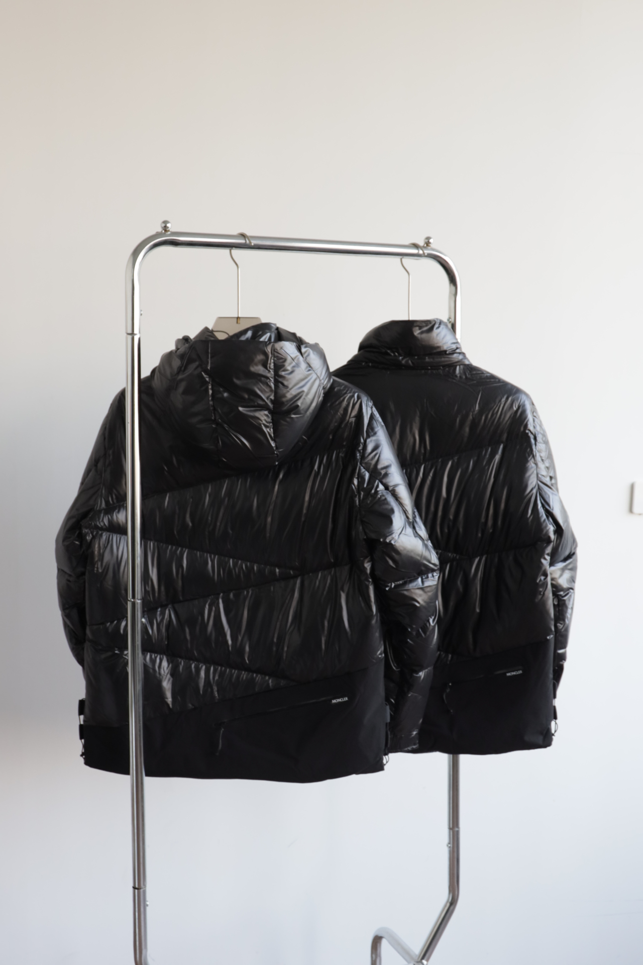 M0nc法萌 Y0nne 斜纹拼接可拆卸连帽羽绒服外套